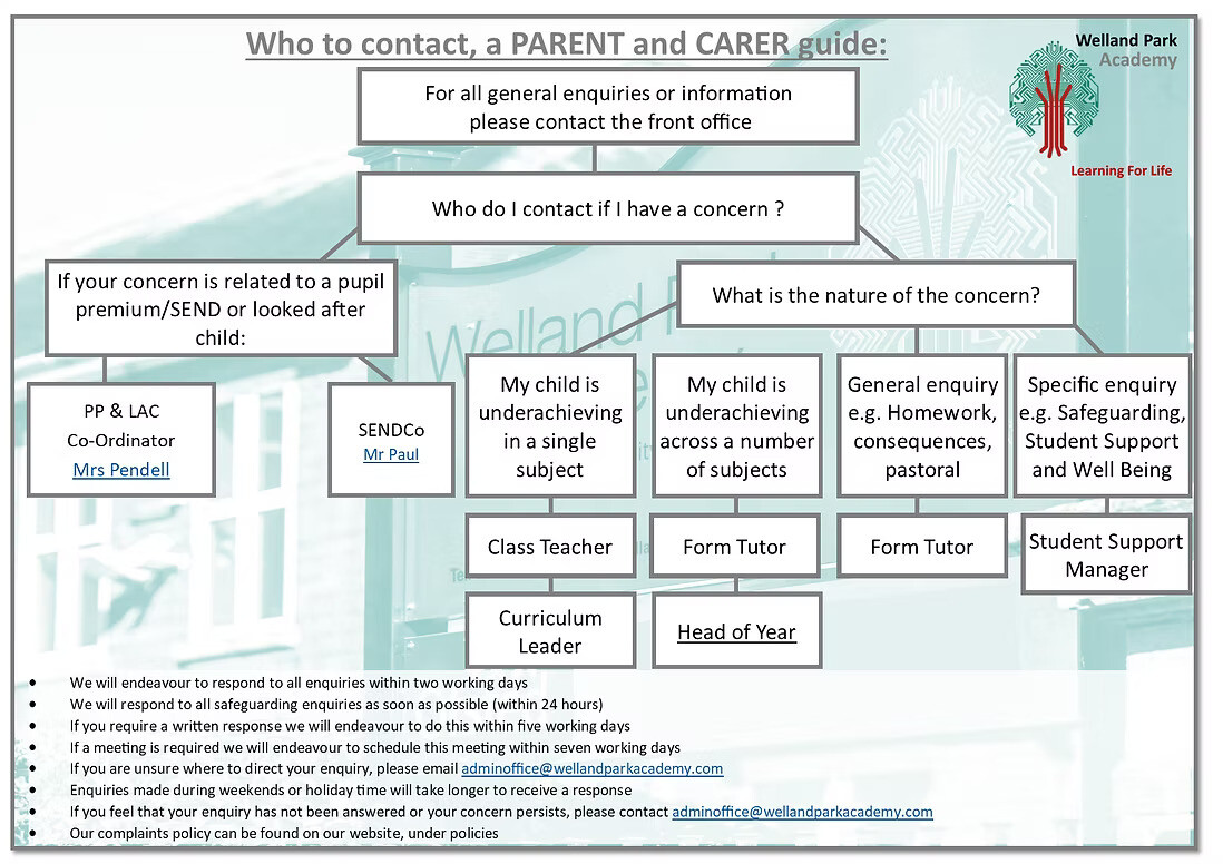 Pastoral Support Manager for Year 11: Mrs A Mee - Meea@wellandparkacademy.com